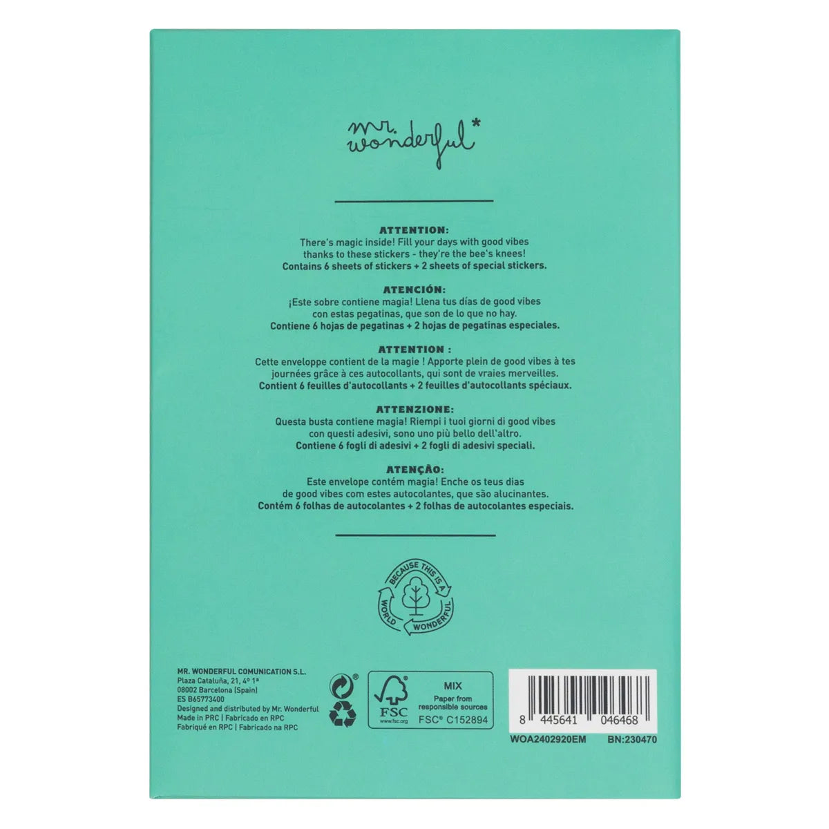 Cartellina A5 con adesivi all'interno. Include 6 fogli di adesivi + 2 fogli di adesivi speciali.