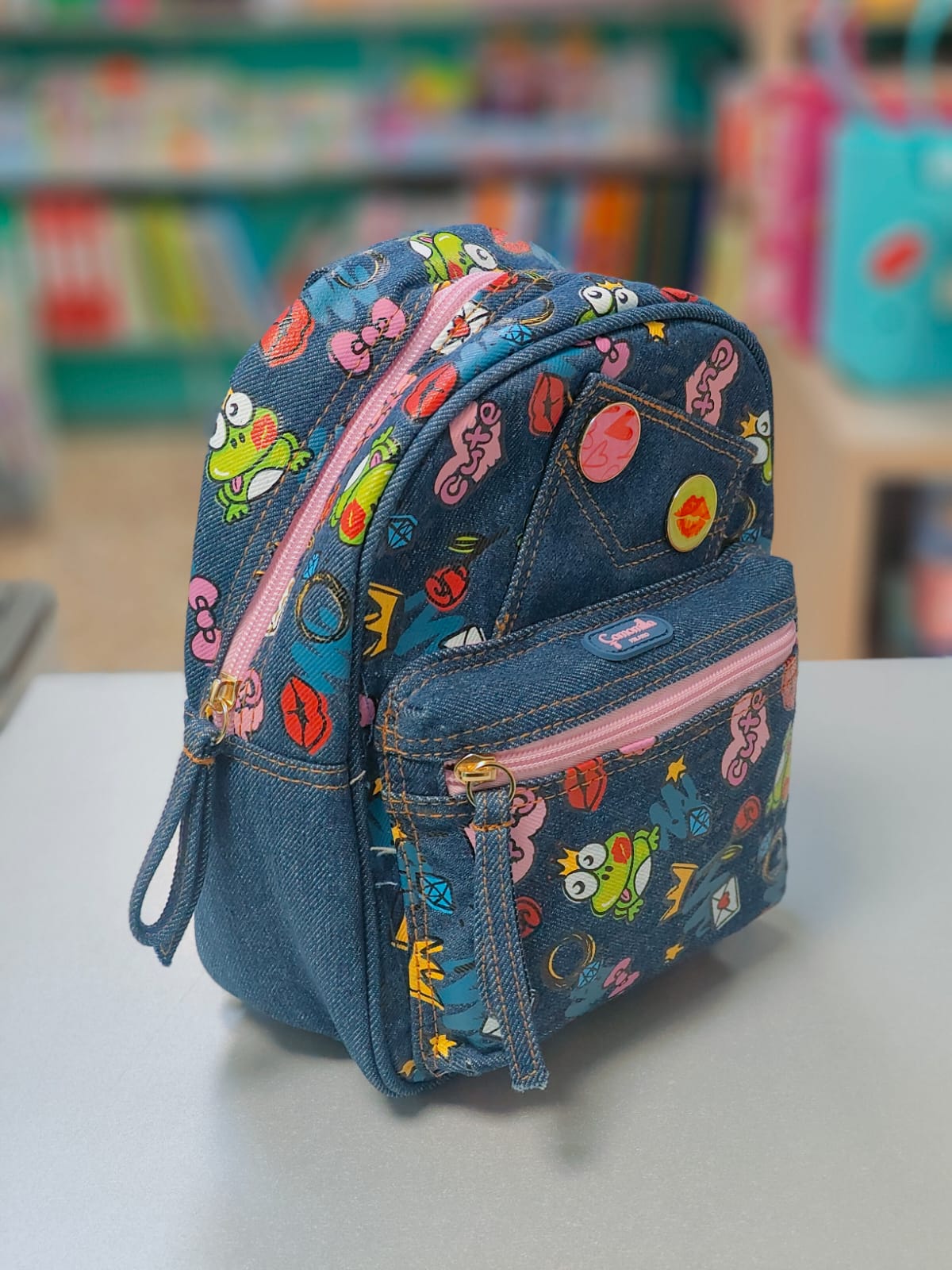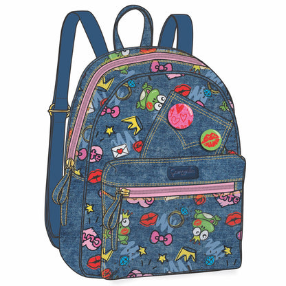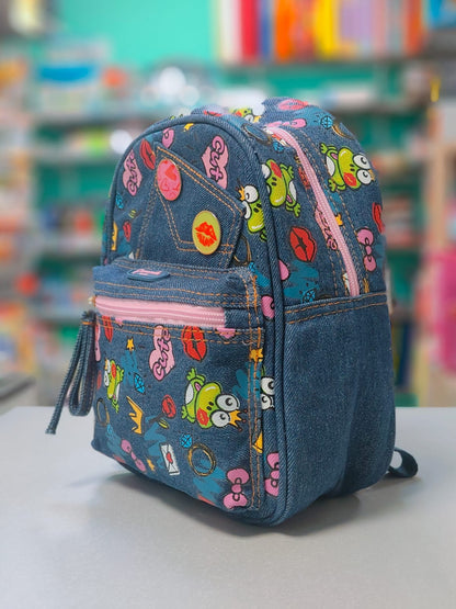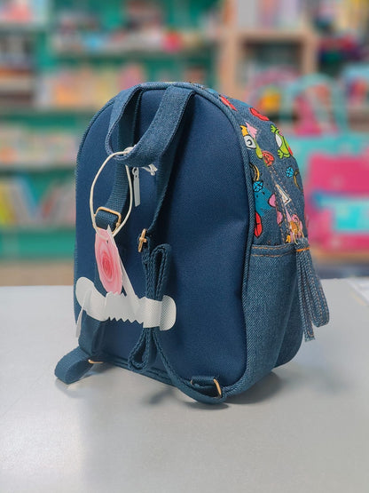 Lo zainetto con spallacci regolabili ha una stampa in jeans super cool con una tasca frontale chiusura a zip e un'apertura dall'alto con chiusura a zip ma più spaziosa.